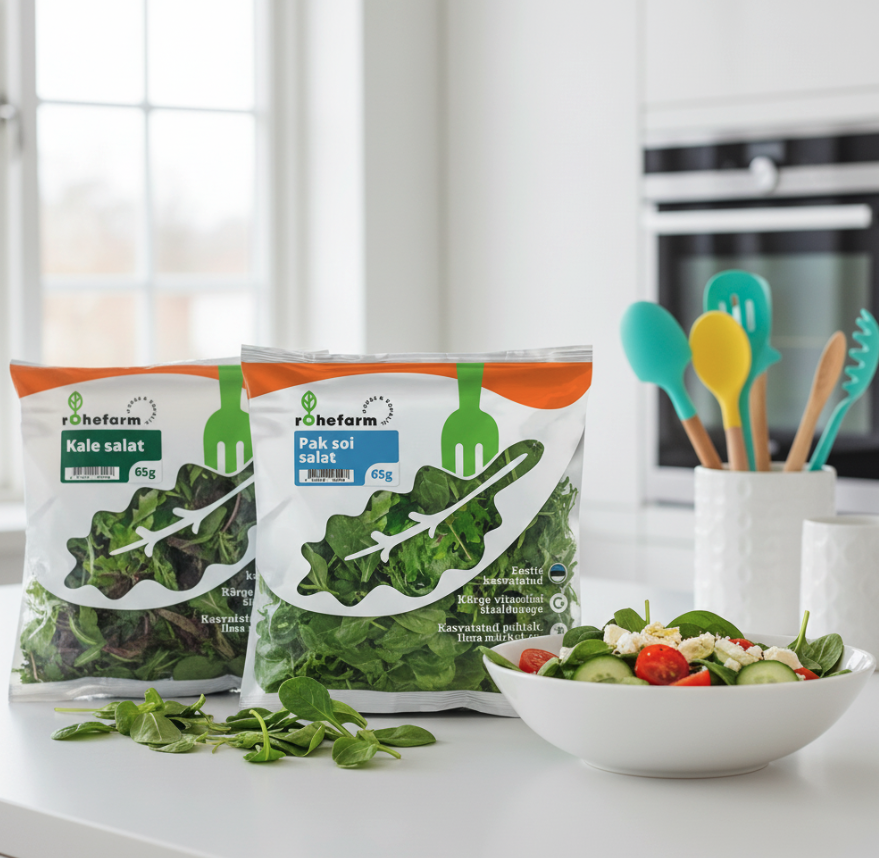 Lühike tarneahel tagab salatites kordades kõrgema C-ja teiste vitamiinide sisalduse. Lisaks värskele välimusele on salatid ka tervisest pakatavad.